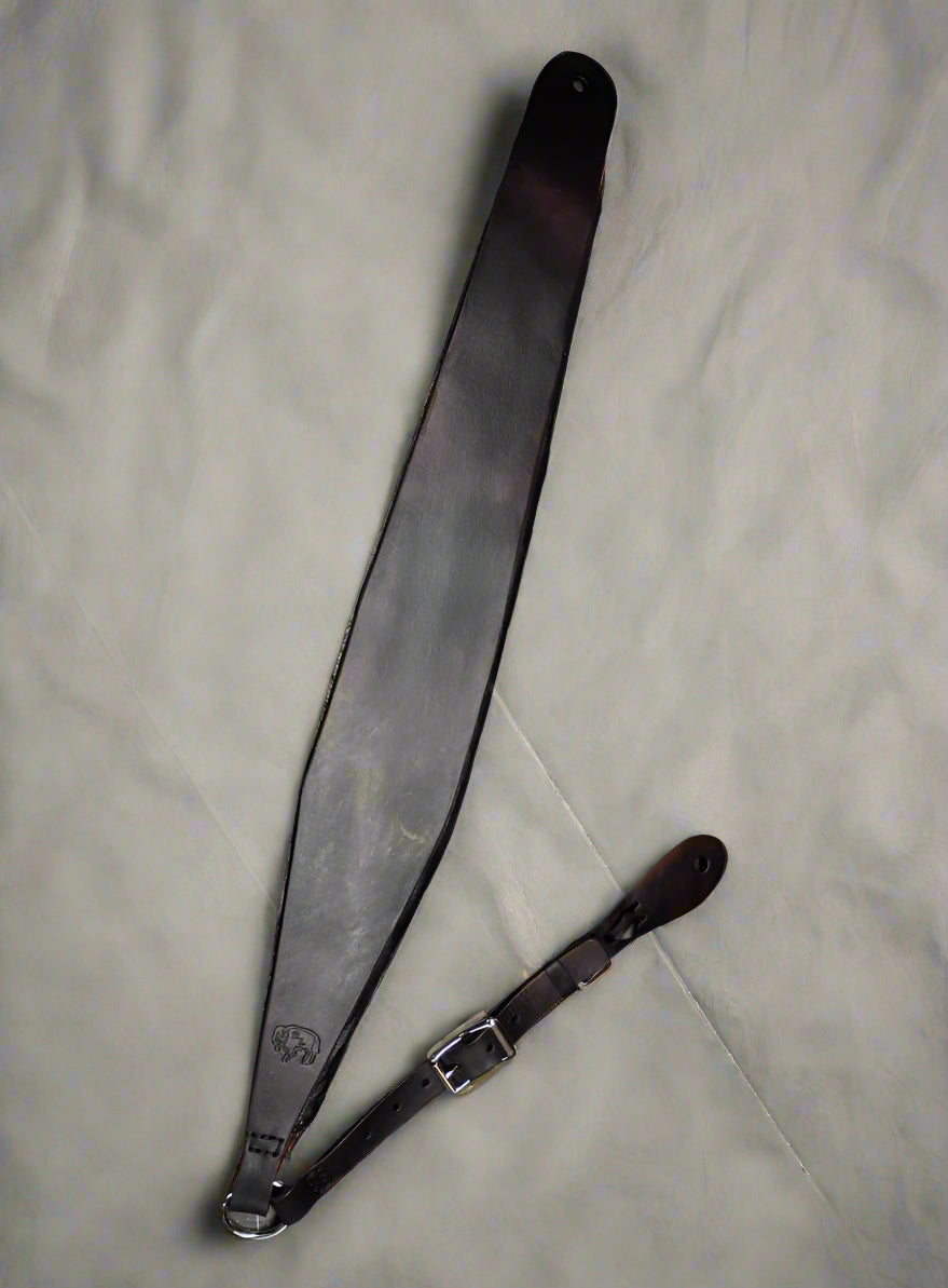 This padded, smooth, versatile and handmade from super thick 8 oz. leather instrument strap is made to order with a simple rear buckle with two 3" and six 1"adjustments.